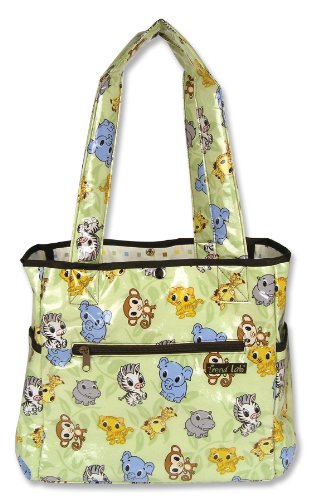 Hit the road equipped and in style with this Chibi Zoo Tote Bag by Trend Lab. Laminated bag features a scatter print of 6 different baby animals on a sage background throughout the outside body with a matching brown, yellow, blue, gray and sage mini square print inside. Outside of bag has two side bottle pockets, a front zippered pocket and a wide Velcro closure pocket on the back. Inside, four pockets and large mesh divider keep all your travel necessities organized. Snap closure keeps inside contents secure. Removable, coordinating changing pad included. Bag measures 14" x 12" x 6" with 22" straps.
