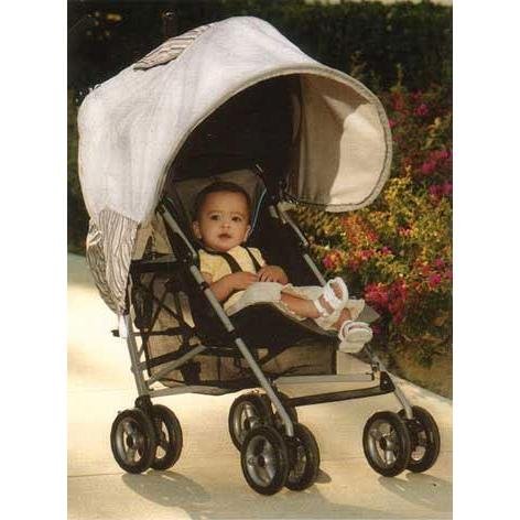 This Traveltime Baby Stroller Sunshade from Infantino provides more shade than most stroller canopies alone. Atractive Grey circles design matches most strollers.
