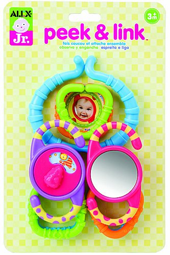 Link together and pull apart! Attaches to the stroller! Spin and reveal characters! Peek a boo mirror.
